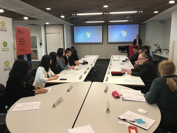 北京大学医学部与墨尔本大学于2014年成立“北京大学--墨尔本大学精神病学研究与培训中心”,举办过四届联合论坛。墨尔本大学医学、牙学和健康科学部部长Shitij Kapur曾于2017年访问北医及其肿瘤医院,与北京大学常务副校长、医学部主任詹启敏进行会晤,希望双方能够在肿瘤领域和相关医学教育方面开展进一步合作。在此次双方的研讨会中,首先段丽萍副院长与墨尔本大学医学、牙学和健康科学部副院长Alex Boussioutas高度评价了以往的合作,之后研讨会的第一部分由Alex Boussioutas副院长、Jane Gunn助理副院长和癌症研究主任Sean Grimmond分别介绍了墨尔本大学肿瘤领域的相关研究,肿瘤医院副院长邢沫介绍了北京大学肿瘤医院及科学研究整体情况,双方就肿瘤领域的相关问题进行了积极的探讨,并计划于今年底举办双方肿瘤领域的联合研讨会。